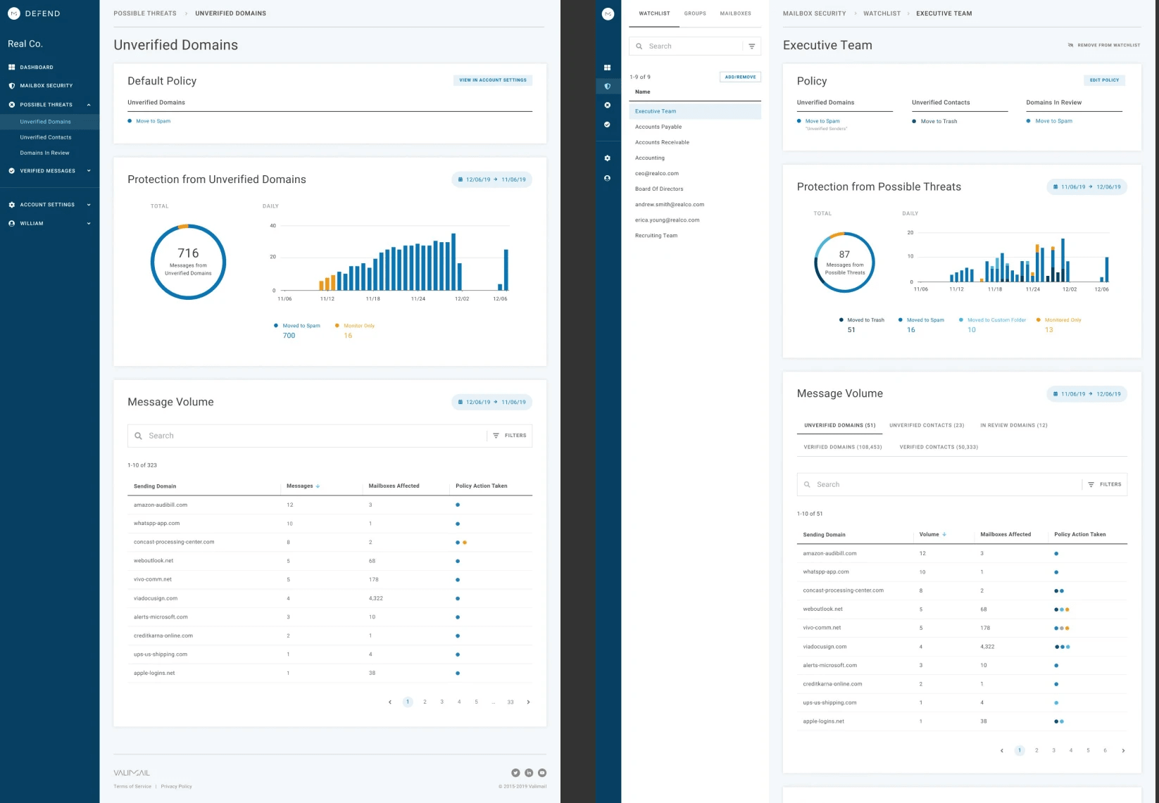 Valimail provides DMARC provides good aggregate reporting for our email domains, allowing us to implement to the eventual reject policy goal.